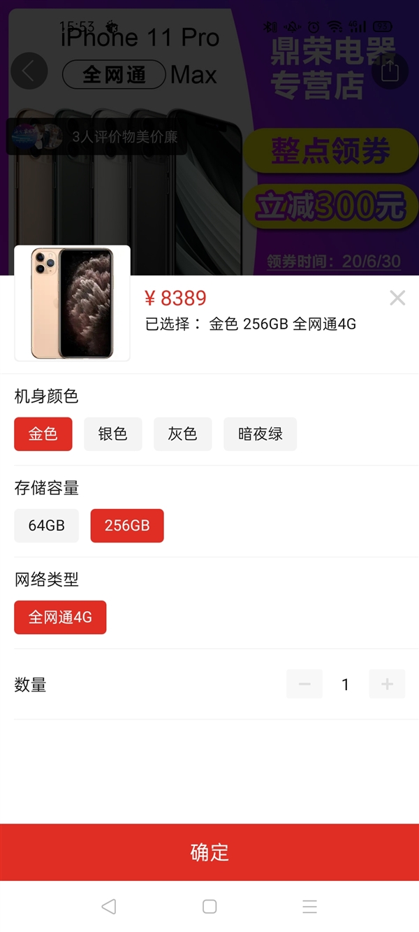 在拼多多上,百亿补贴商品iPhone 11 Pro Max 256GB版售价是8389元,整点领券再减300元,到手价低至8089元,比海南免税iPhone 11 Pro Max 256G版还要便宜536元。